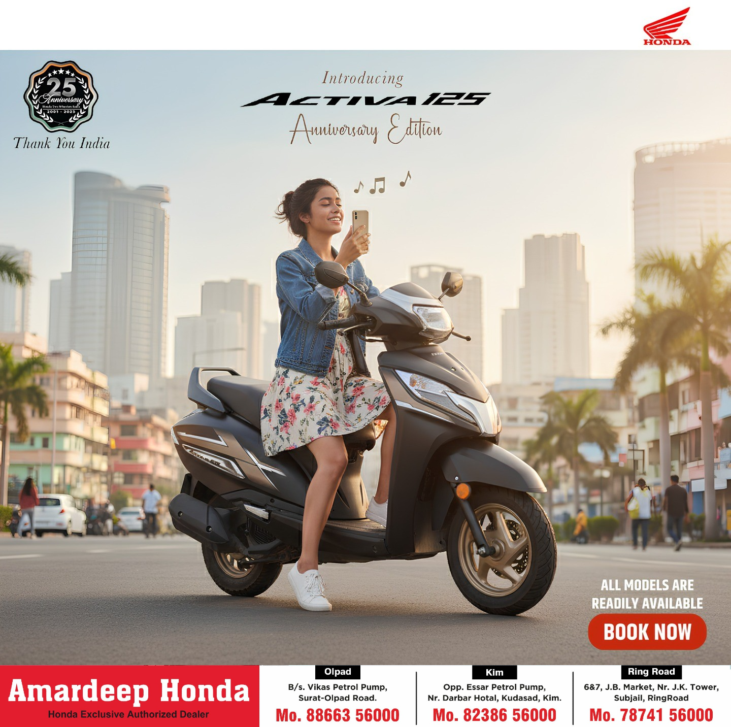 Amardeep Honda is the Authorised dealers of Honda Two Wheeler since 2014,offering best of our services in sales service and spares.